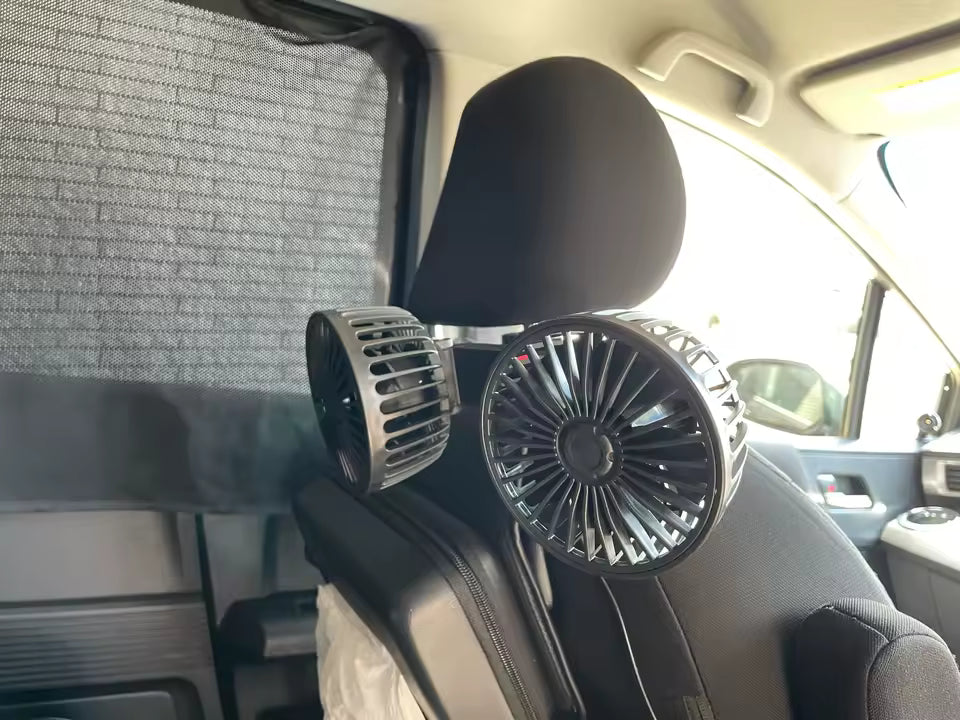 Ο ανεμιστήρας τοποθετείται εύκολα πίσω από το μπροστινό κάθισμα και τροφοδοτείται μέσω του τυπικού 12V αυτοκινήτου. Είναι ιδανικός για οικογένειες με παιδιά, κατοικίδια ή μακρινά ταξίδια όπου η άνεση των επιβατών είναι εξαιρετικά σημαντική.