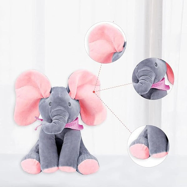 Αυτός ο πανέμορφος ελέφαντας ακριβώς αυτό κάνει – τραγουδάει χαρούμενα τραγούδια και ταυτόχρονα καλύπτεται με μεγάλα μαλακά αυτιά, προκαλώντας γέλιο και ενθουσιασμό στα μικρά παιδιά. Οι κινήσεις και οι ήχοι του βοηθούν το παιδί να αναπτύξει την ακοή, την όραση και τη μηχανική του μέσω του παιχνιδιού.
