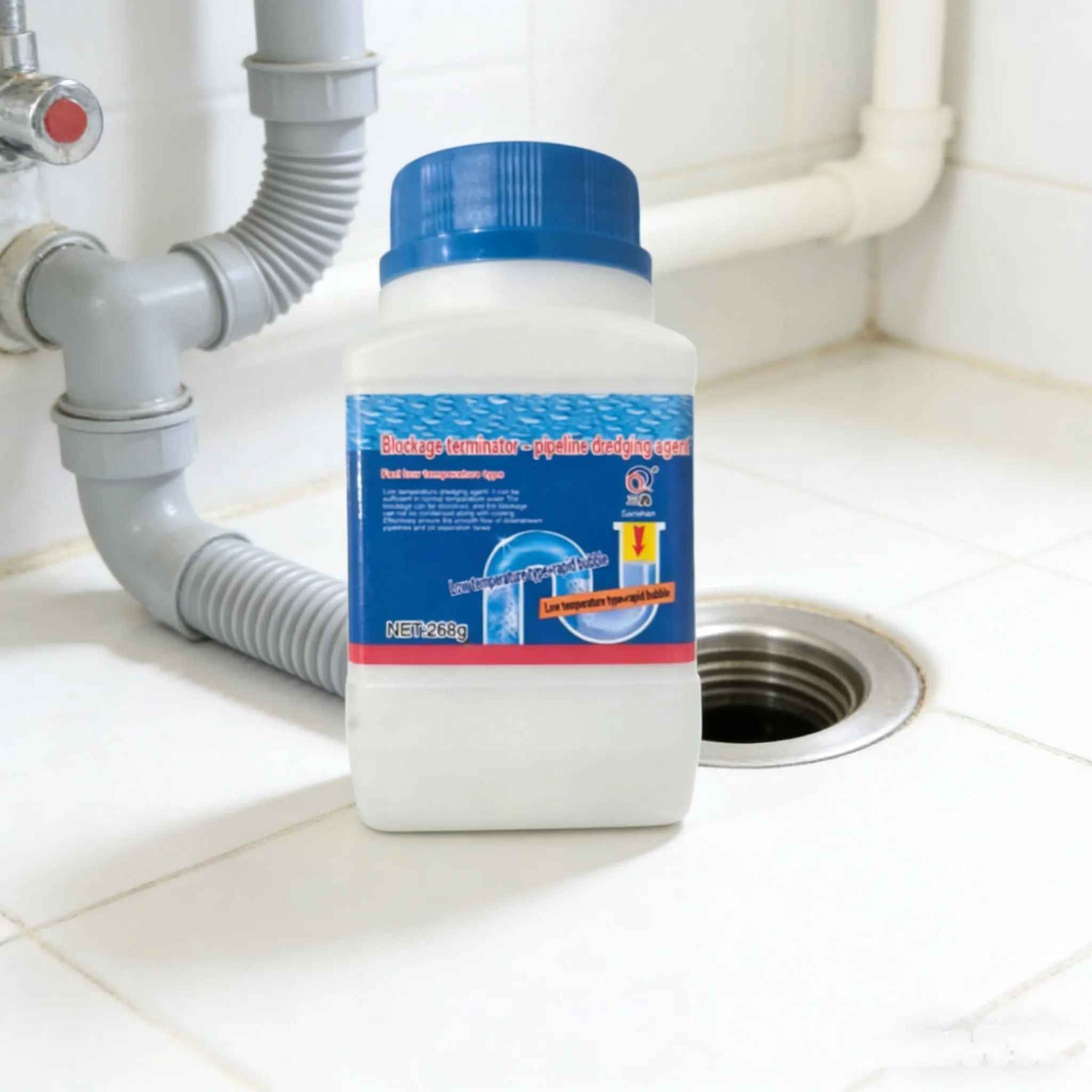 Praktično i efikasno sredstvo u prahu za brzo otpušavanje kuhinjskih i kupatilskih odvoda; uklanja masnoću, kosu i sapun bez alata.